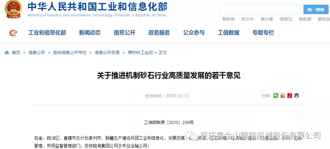近日,為大力推廣機制砂,促進機制砂產業(yè)健康發(fā)展,工業(yè)和信息化部、guojia發(fā)展改革委、自然資源部、生態(tài)環(huán)境部、住房城鄉(xiāng)建設部、交通運輸部、水利部、市場監(jiān)管總局和國鐵集團等guojia十部門聯(lián)合發(fā)布《關于推進機制砂石行業(yè)高質量發(fā)展若干意見》,是有史以來guojia關于砂石行業(yè)發(fā)展的首個指導意見,也是中國砂石行業(yè)歷史性轉折的里程碑,標志著中國砂石行業(yè)從2019年正式進入高質量發(fā)展的新時代。